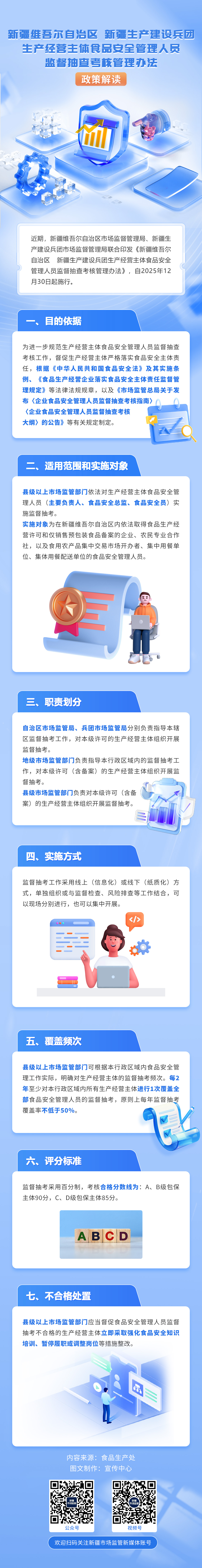 《新疆维吾尔自治区 新疆生产建设兵团生产经营主体食品安全管理人员监督抽查考核管理办法》政策解读