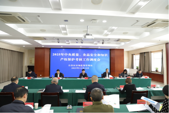 为全力做好2025年度中央考核迎检工作,12月12日,自治区市场监管局召开2025年中央质量、食品安全和知识产权保护考核调度会,进一步督促、指导各部门细化考核指标,强化责任担当,确保在“国考”中取得优异成绩。党组书记朱新主持会议并讲话。