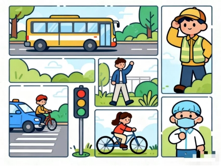 严守交通规则:过马路走人行横道、遵守信号灯,不闯红灯、不追逐打闹;未满12岁不得骑自行车上路,未满16岁不得骑电动自行车,骑行时一定要戴安全头盔。