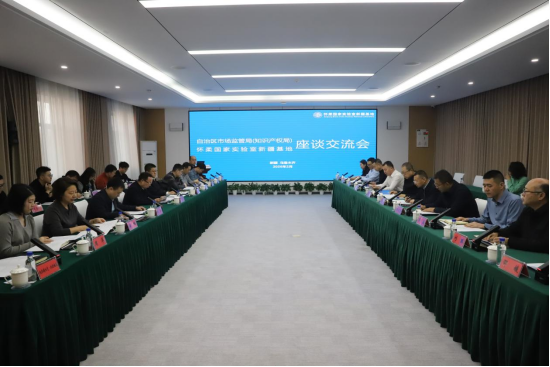 座谈会上,怀柔实验室新疆研究院负责人介绍了基地建设、科研布局与核心技术攻关进展情况,自治区市场监管局(知识产权局)围绕知识产权创造、保护、运用、管理、服务全链条能力建设和标准化资源供给、前沿计量技术研究等具体服务举措作详细介绍,重点推介专利预审、专利导航、高价值专利培育、成果转化、海内外维权援助等专业化服务,简要介绍知识产权公共服务网点体系布局与服务事项,明确精准对接、高效赋能科研攻关的工作路径与务实举措。双方就核心技术研发、科技成果转化、标准体系建设中的知识产权需求进行深入交流,达成协同共识。