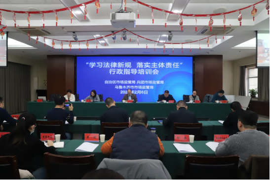 2月6日,自治区市场监管局联合兵团市场监管局、乌鲁木齐市市场监管局召开“学习法律新规落实主体责任”行政指导培训会,市场稽查专员出席会议并讲话。