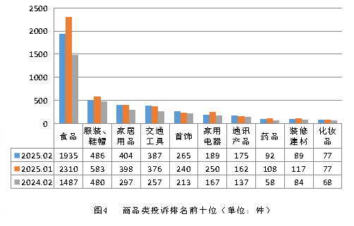 商品类投诉同比上升26.92%。投诉量排前五位的商品大类分别是食品类、服装鞋帽类、家居用品类、交通工具类、首饰类,共占商品类投诉量71.96%。