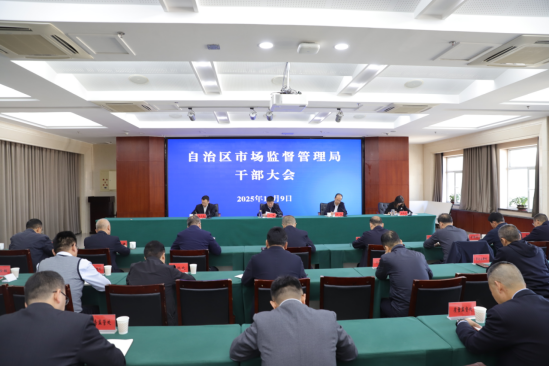 10月9日,自治区市场监管局召开干部大会,深入学习贯彻习近平总书记出席自治区成立70周年庆祝活动期间的重要讲话精神,认真贯彻落实全区干部大会精神,结合市场监管工作实际,对重点工作进行再安排、再部署、再强调。党组书记朱新主持会议并讲话。