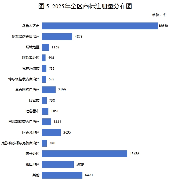 图6 截至2025年底全区累计有效注册商标量分布图